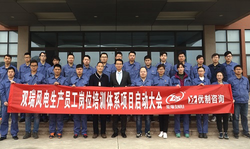 2018年3月19日,中船重工旗下雙瑞風電葉片有限公司如期舉行《精益運營管理I期-生產員工崗位培訓體系》項目啟動大會。公司武副總經理、董副總經理、總部HR劉部長、生產管理部、技術部、質量安全部、設備部等各核心部門部長和項目組成員共計40余人出席會議。