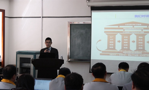 在項目背景介紹上,李副總介紹了近幾年來本溪三藥開展的改善活動。公司從13年開展精益運營管理體系的構建,先后實施了5S改善活動、一線員工崗位培訓體系、TPM全員設備維護等多項體系性精益項目……通過這些改善活動的全面開展,公司夯實了管理基礎、培養了一批管理骨干隊伍,也取得了很好的成果。為了進一步培養更多的優秀基層管理者、同時為實現GMP保駕護航和達成企業經營目標雙豐收,本溪三藥今年啟動了《精益車間標準化管理體系》項目,其重點目標是使中基層的管理工作規范化和標準化,同時系統的提升基層管理者的管理能力,全面提升車間班組管理的專業化水平,顯著提高車間班組的戰斗力。