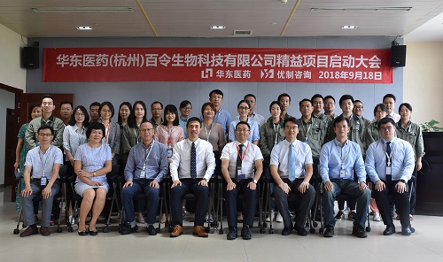 2018年9月18日,華東醫藥集團杭州百令生物科技有限公司《精益運營管理體系I期》項目正式啟動。集團學院佟院長、集團總裁助理耿總、公司總經理秦總、優制咨詢總經理姜瑩老師及項目組核心成員共計三十余人出席會議。