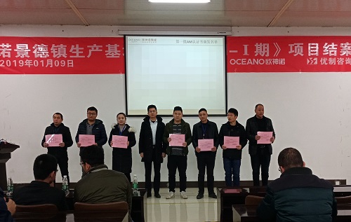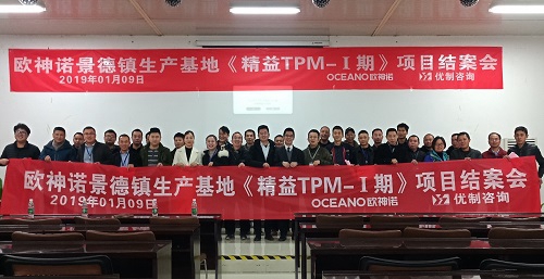 元月9日,歐神諾陶瓷集團景德鎮生產基地《精益TPM-I期項目》順利收官!公司總經理吳總、副總經理徐總、優制咨詢副總經理莫老師及項目組骨干成員共計30余人參加了本次結案會。