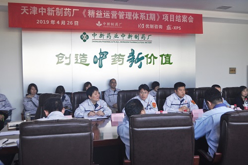 4月26日,天津中新藥業集團工廠《精益運營管理體系ZPS-I期》項目順利結案,黨委書記龐書記、工廠負責人王廠長、優制咨詢總經理姜瑩老師、副總經理郭老師及兄弟公司代表、項目組骨干成員列席參加。