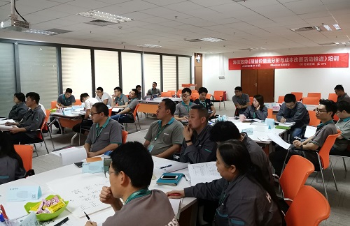 何老師通過知識講解、案例研討和實戰練習相結合,讓學員們掌握了全局分析、引領改善的方法、改善的工具和現場成本的計算方法。在學習過程中,學員們積極參與討論,在練習過程中發揚吃苦耐勞、刻苦鉆研的精神,針對所學知識,結合自身生產狀況加以實踐應用。