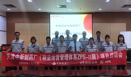 2019年7月11日,天津大型上市醫(yī)藥集團中新藥業(yè)集團工廠再次攜手優(yōu)制咨詢,《精益運營管理體系II期》項目隆重啟動。工廠負責人王總、優(yōu)制咨詢總監(jiān)荊老師、項目組骨干成員列席參加。
