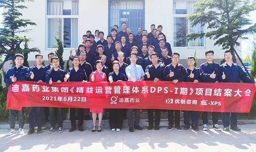 2021年6月22日,迪嘉藥業集團召開《精益運營管理體系-I期 》項目結案總結會議,迪嘉藥業集團總經理王總、生產總監姜總、優制咨詢總經理姜瑩老師、副總郭老師及項目組成員參加了會議。
