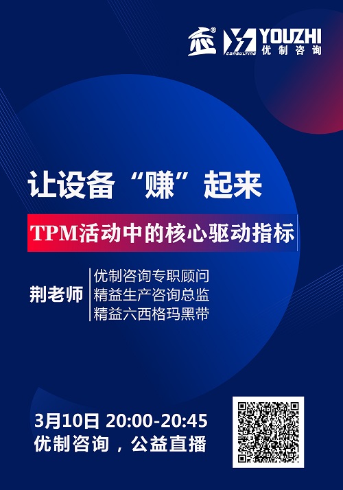 在當(dāng)今制造業(yè)設(shè)備取代人的發(fā)展趨勢下,設(shè)備管理在生產(chǎn)中的重要性越來越高。越來越多的企業(yè)開始推行TPM活動,以期提高設(shè)備的利用率。TPM活動的根本目的是什么?如何量化、準(zhǔn)確地衡量TPM活動和設(shè)備管理工作的效果?在本期課程中,優(yōu)制咨詢的專職顧問荊老師將帶領(lǐng)大家學(xué)習(xí)設(shè)備管理的核心指標(biāo)。