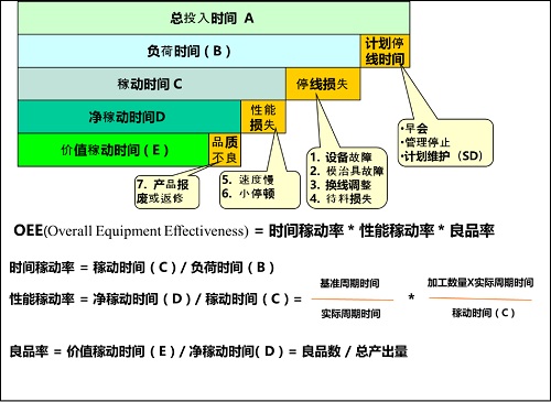 設(shè)備綜合效率目的是測(cè)量并改善生產(chǎn)過(guò)程所存在的七種常見(jiàn)原因?qū)е碌娜箢悡p失,提高班產(chǎn)。