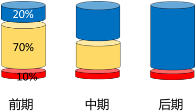 所謂271原則,指的是由于員工的水平參差不齊,紀律性、自覺性、積極性不在同一個起點,當一個活動發布后,能夠積極響應、遵守、自覺執行的,約占20%;70%的人處于觀望狀態,既不積極響應,也不會明確的表示抵制;剩余的10%則是極力尋找各種理由拒絕執行的消極分子。(如下圖前期所示)