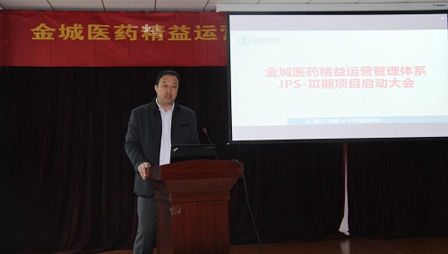 2018年2月27日,金城醫藥集團《精益運營管理體系JPS-III期》項目啟動大會順利召開。醫化總經理張總、產業公司生產總監王總、優制咨詢精益運營咨詢總監楊煜老師、各公司管理團隊及項目組成員共110余人參加會議。