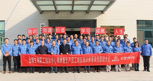 2018年2月25日,金城生物藥業集團《職工培訓中心揭牌暨生產員工崗位培訓體系》項目啟動大會順利召開,公司總經理楊總、常務副總經理李總、人事行政副總焦總、優制咨詢精益管理專家楊煜老師及項目組代表成員共計六十余人參會。