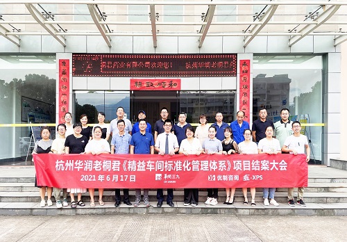 2021年6月17日,杭州華潤老桐君藥業有限公司《精益車間標準化管理體系》項目順利結項,公司總經理趙總、優制咨詢莫老師、生產負責人黃總、運營中心劉經理及項目組成員參加會議。