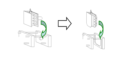 1、應用專業工具,降低作業難度。如:應用自動加緊裝置取代螺絲,降低固定模具的難度與時間;應用導角(如下圖),降低定位難度,縮短調整定位所需時間……