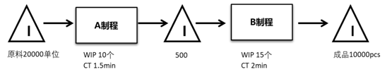 例:下面是某產(chǎn)品制程的一部分,在AB制程中間有一個在制品庫,設(shè)置庫存有兩個方案,一是設(shè)置5天的庫存量,二是設(shè)置2小時的庫存量,如果你是設(shè)計者,你愿意選擇哪一個呢?